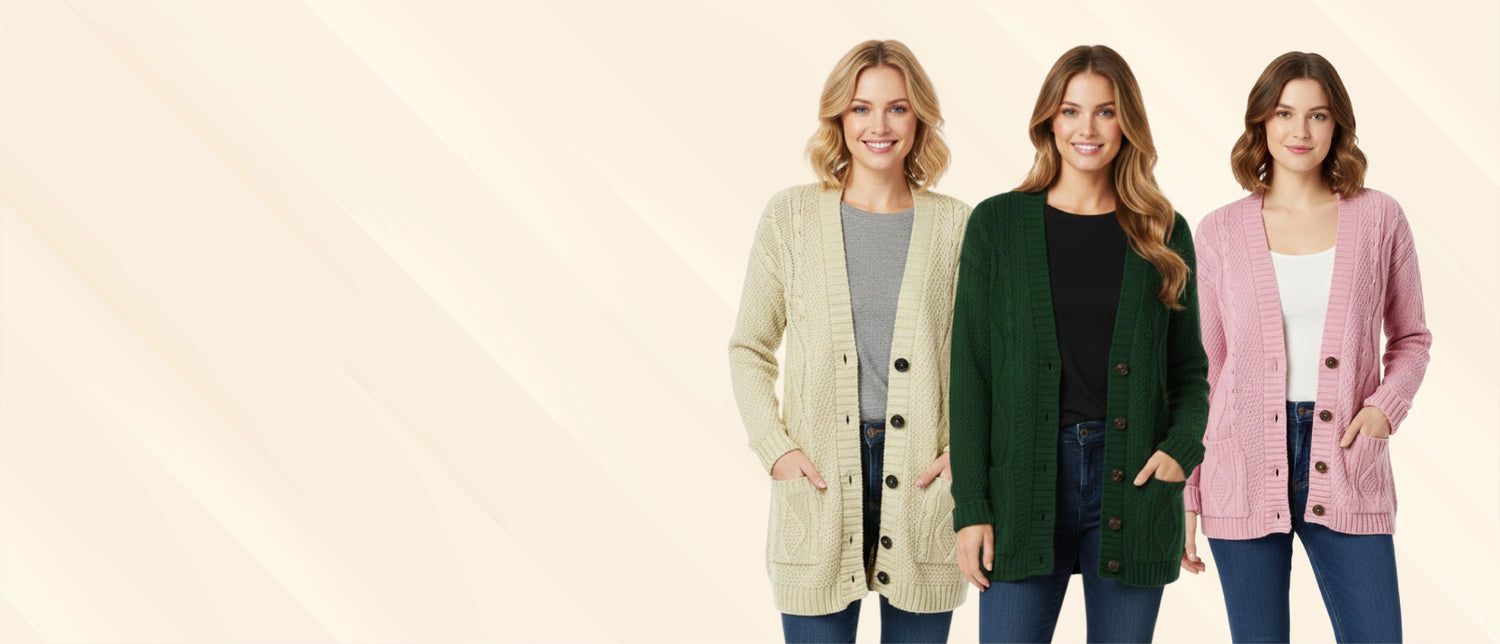 Ladies Cable Knitted Cardigans Oversize Long Hooded
