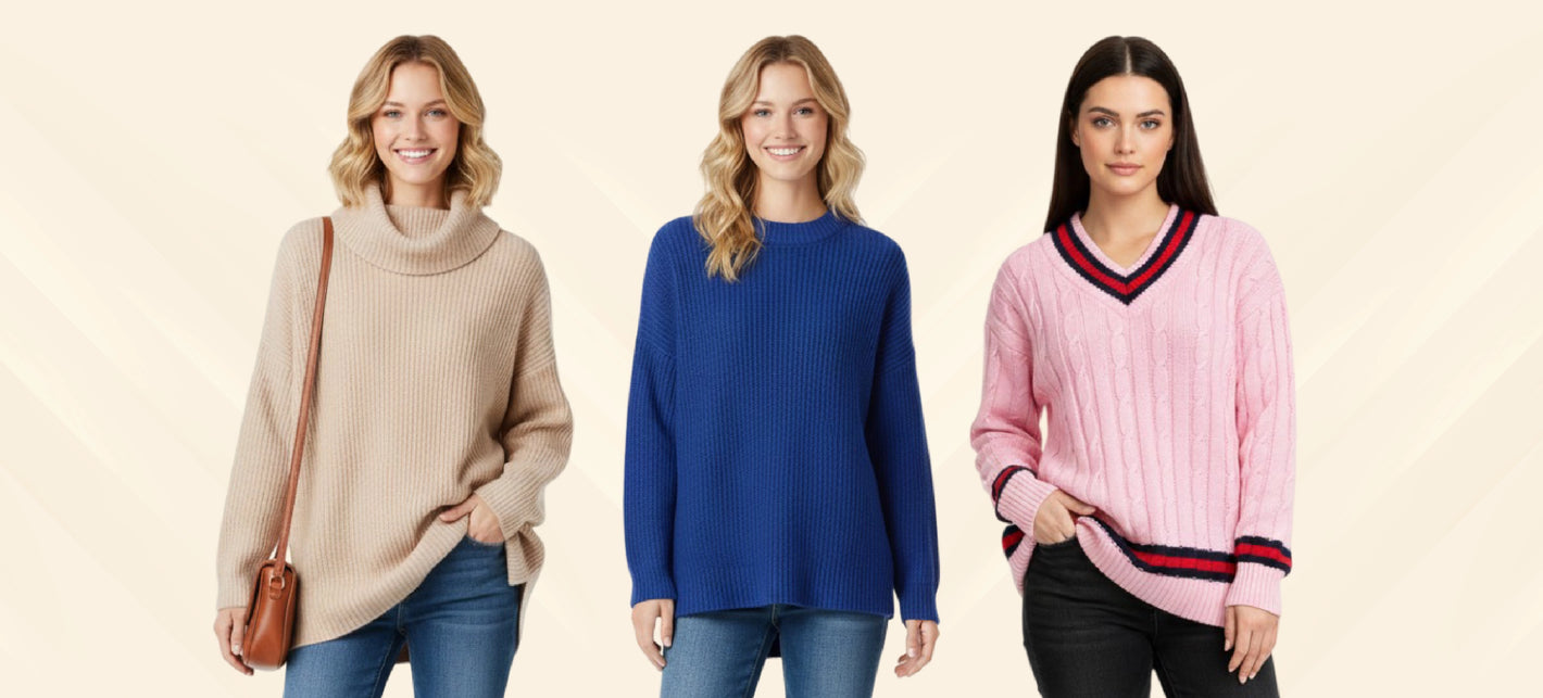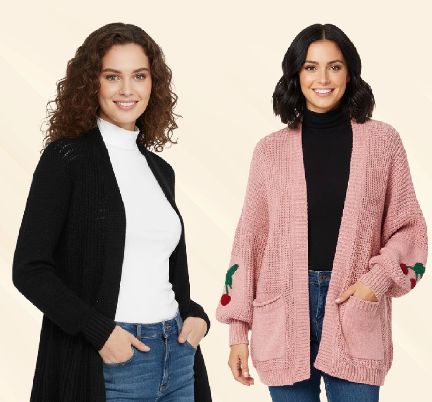 Womens Fine Knitted Striped Jumper Open Long Sleeve Sweater Twin Cardigan